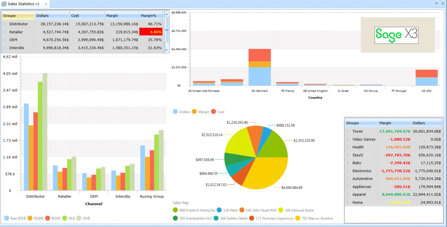 Sage X3 est un logiciel ERP (Enterprise Resource Planning) complet qui aide les entreprises à gérer leurs finances, leurs opérations et leur chaîne logistique, ainsi qu'à améliorer leur efficacité, leur rentabilité et leur réactivité.